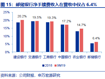 9M19邮储银行手续费净收入占比为6.4%,低于五家国有行(14.7%-20.2%)。但是其手续费净收入同比增长19%,较五家国有行更高。基于其庞大的客户基础和较强的市场营销能力,我们认为邮储银行手续费收入仍有较大的增长空间。邮储银行的客户群体达到6亿人,约占中国人口的40%,但是其VIP客户仅占零售客户的5%。随着县城和农村地区经济蓬勃发展,我们认为这是一片蓝海市场,且邮储银行将在该市场继续挖掘客户价值。此外,邮储银行的员工具有较强的市场营销能力。从代理保险业务上看,18年邮储银行代理保险新单保费规模在中国银行业同业中位居第一位。但对于基金等复合金融产品的销售仍缺乏经验。因此,我们认为邮储银行在中间业务上仍有较大提升空间。