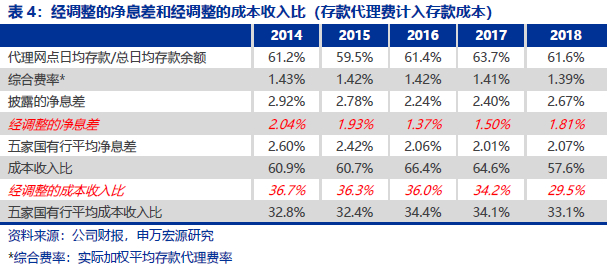 邮储银行通过优化网点建设,预计其代理费率将持续下降,我们预计2019-2021E成本收入比分别为55.1%、51.6%、48.0%。