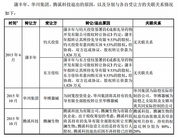 在发行人及保荐机构回复意见中,成都先导表示,在2015年6月,蒲丰年与钧天投资和东方佳钰有过接触,在协商之下,将手中的筹码进行转让,套现逾3600万元。按照成都先导的说法,蒲丰年该次股权转让并退出已完成,且股权转让之受让方钧天投资、东方佳钰已支付相应的股权转让价款,蒲丰年已就相关股权转让所得缴纳个人所得税,公司已就相关变更于2015年6月26日完成工商变更手续;自股权转让交易完成至问询回复出具之日,距离前述工商变更登记手续完成之日已超过4年,成都先导与钧天投资、东方佳钰未收到蒲丰年就此股权转让与退出事宜所提出的诉讼、仲裁请求或者律师函。