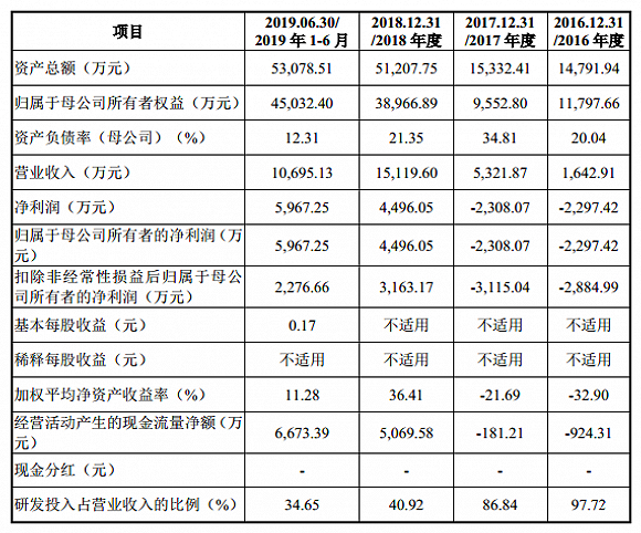 从财务数据来看,在2016年和2017年该公司还处于亏损阶段,两年里的营业收入分别为1642.91万元、5321.87万元,归母净利润分别为-2297.42万元、-2308.07万元。