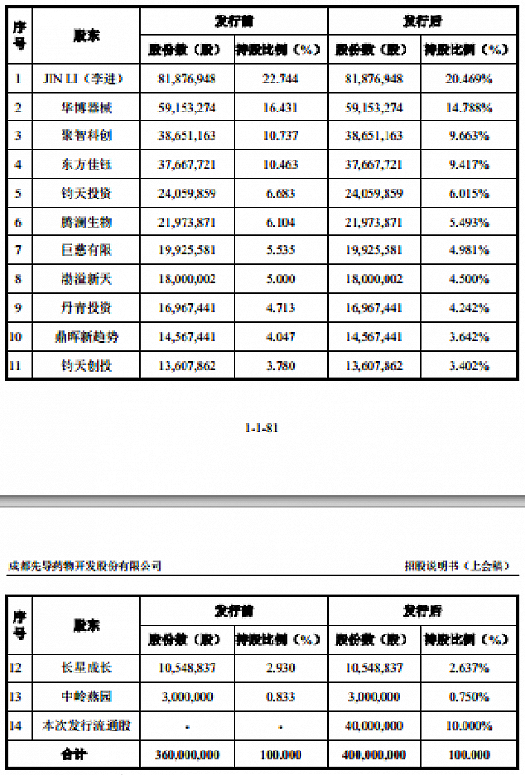 这之后的2012年3月及2012年6月,才出现JIN LI(李进)的身影,即蒲丰年及JIN LI(李进)分别以其共有的“先导化合物研发平台专有技术”(评估价值为900万美元,蒲丰年及JIN LI(李进)分别享有专有技术评估值的21.63%和78.37%)向先导有限出资,分别取得先导有限新增的1243.727万元及4506.283万元注册资本。但时至今日,成都先导的股东名单上,却没有蒲丰年了。