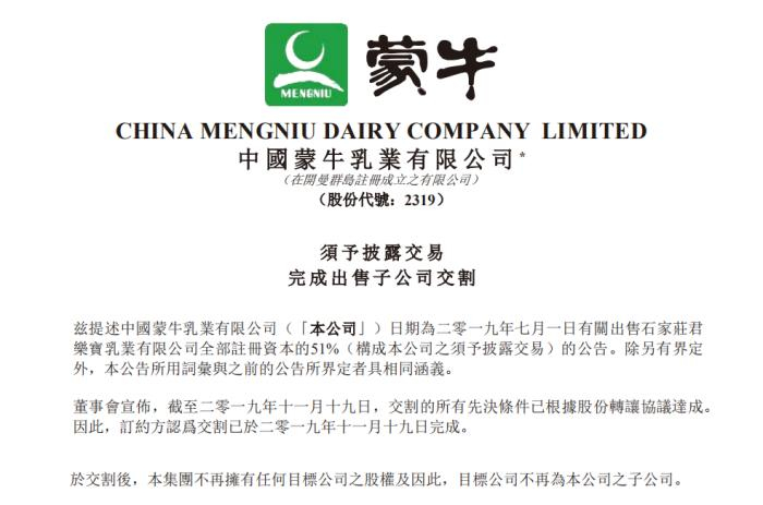 原标题:蒙牛出售君乐宝51%股权完成,君乐宝正式单飞