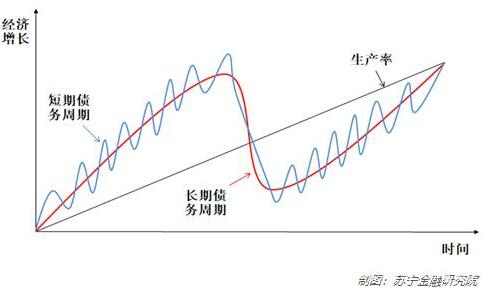 桥水基金的达里奥认为,“周期不过是按一系列由相同逻辑规律驱动而重复发生的事件,虽然每次出现的方式未必完全一样,但规律都是相似的”。根据他的宏观周期模型,知识累计和技术进步带来的生产率提高在长期看是一件缓慢的事情,因此经济增长短期更多依靠的是信贷的增长,信贷宽松与紧缩在短期和长期的周期性变化造成了经济周期的波动,经济周期的本质就是信贷周期。
