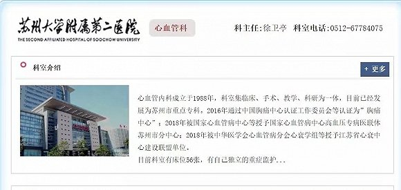 苏州大学附属第一医院心血管内科是该院重点学科,国务院第二批博士学位授予点,苏南地区最大的心血管病诊疗中心。