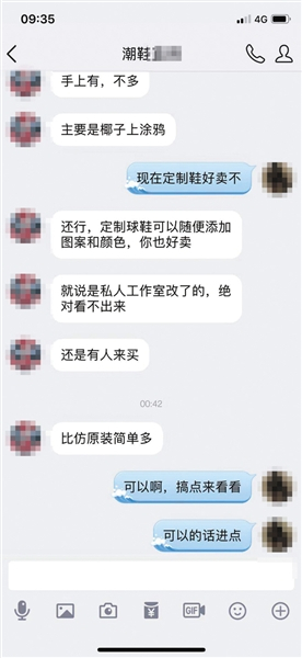 “如今市面上很多知名工作室出于品牌考虑,通常会选择用正品球鞋进行改造并销售。但更多的小工作室为了获利,销售的定制球鞋会采用仿鞋,甚至还会偷换玩家寄去改造的球鞋。”多年从事球鞋销售的赵磊(化名)告诉记者。