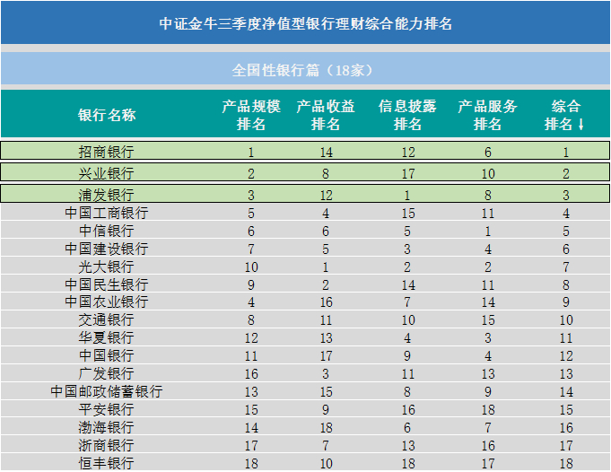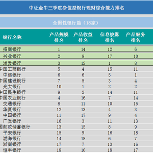 原标题:中证金牛发布三季度净值型银行理财综合能力排名