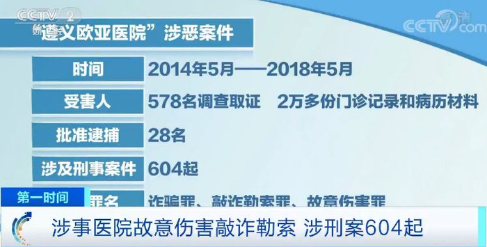 涉事医院故意伤害敲诈勒索 涉刑案604起