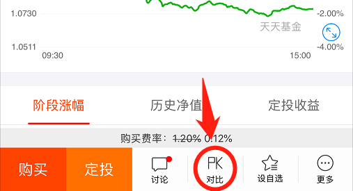 第三步:点击详情页底部的“PK对比”功能,进入到基金对比的首页。