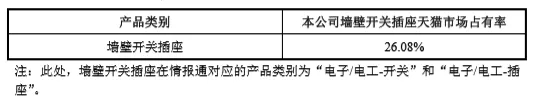 《中国电器工业年鉴》2015版披露,中国电器工业协会电器附件及家用控制器分会2014年对全国家用开关、插头插座等电器附件产品部分生产企业进行了调查,统计了2014年各类指标排名前十名的企业,公牛集团产品销售收入排名第一。