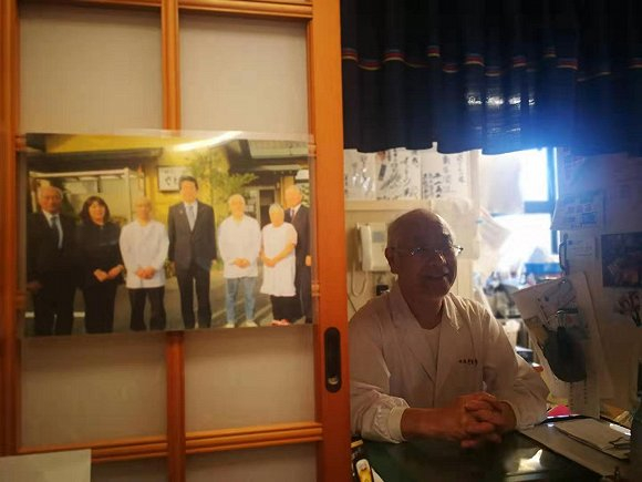 11月的冬阳下,身着白色工服的施工队伍正在推土平地,运输车穿行其间。一家名为四季料理·味感佐藤的餐厅,迎来了更多客人。餐厅墙壁上挂着日本首相安培晋三“桃李自芳”的手迹,成为景观之一。