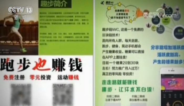 今年9月,趣步公司涉嫌网络传销、非法集资及金融诈骗被立案调查。他们打着“区块链+运动大数据”的概念,声称用户只要走路和跑步,就能获得“糖果”作为奖励。“糖果”可以换购商品甚至提取现金,用户只要每天走够三、四千步,每月就能至少赚200元,上不封顶。而推广趣步,投资者还能赚到更多的钱。