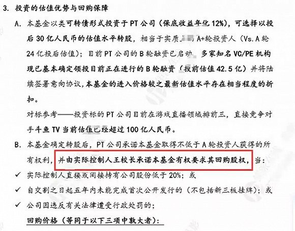到目前为止,各方始终没有得到确切的答案。而璟字悌为1.5亿的欠款,被推测是由于一条协议。2017年熊猫直播融资不如想象中顺利,为了获得资金,王思聪购买了钜派投资旗下名为“钜大秀赢财股权投资基金”的产品,是单一投向熊猫TV的股权投资产品,该基金取得不低于A轮投资人获得的所有权利,并承诺一旦发生折价,王思聪将以年息12%回购股权。