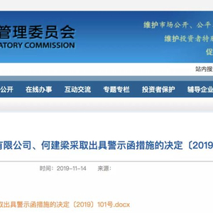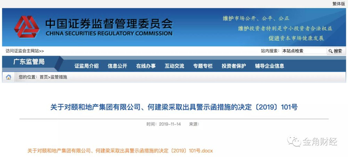 根据中国证监会广东监管局出具的《行政监管措施决定书》,颐和及其实控人何建梁因信息披露和承诺爽约被处以行政监管。