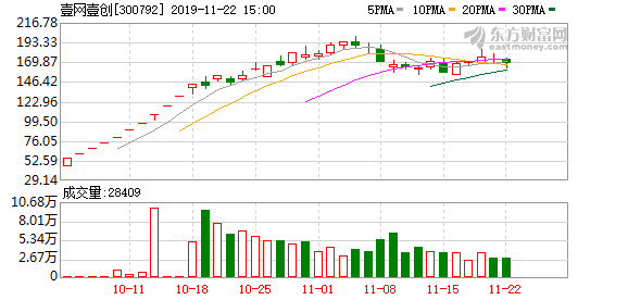 这是壹网壹创在深圳证券交易所创业板上市后的第一次投资人大会。9月27日上市的壹网壹创,发行价格为每股38.3元。截至11月22日收盘,壹网壹创报每股167.79元,跌2.97%,总市值134.23亿元。