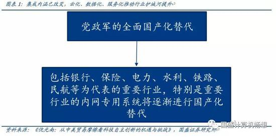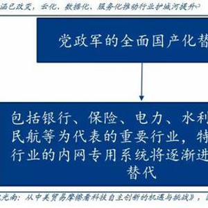 国产化产品替代将从政府逐渐渗透到行业。随着华为推出基于鲲鹏芯片的泰山国产服务器,泰山服务器鲲鹏920是基于ARM架构的CPU芯片,是华为首次推出服务器CPU芯片,据徐文伟介绍这是一款高性能,高吞吐,高计算的芯片,其跑分超过业界主流CPU的25%,是业界最快的服务器CPU。泰山服务器的推出将加快国产服务器的替换节奏。而办公电脑的国产化替代,也将从党政军逐步渗透到重要行业。