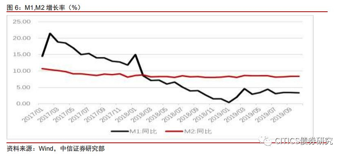 企业中长期贷款回暖趋势明显,或由于企业内部债务腾挪。通过将2019年前十个月的企业中长期贷款新增数据与2018年同时期作比较,可以发现从今年8月开始,中长期贷款规模出现显著增加现象。通过比较M1中单位活期存款当月增加值与企业贷款当月增加值,可以看出2019年8月份以来企业贷款增量大于单位货期存款增量,或可反映2019年8月以来企业中长期贷款同比增长,重点并非实体企业的新增融资需求,而是对之前到期债务的借新还旧。