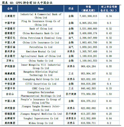 ★ GPFG投资中国:重仓金融+消费,散投新兴成长。