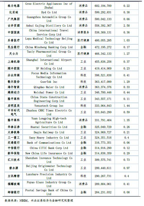 NBIM自2003年起开始进军中国市场,在2004年GPFG的持仓名单中首次出现了12家中国公司。2006年10月,NBIM成为第二批QFII之一,并于2008年1月获得2亿美元的投资额度,至今已累计获得25亿美元总额,是我国第五大QFII机构,目前中国已成为GPFG持仓公司数量最高的第三大投资地。就最新的持仓数据来看,253家中国企业榜上有名。从持仓市值来看,NBIM对中国市场的以四大国有银行为代表的金融企业较为关注。除了普遍被外资青睐的消费品外,工业板块也比较靠前但资金相对分散,是被配置最多公司数量的板块。具体到个股方面,我们梳理了GPFG组合中持有进入上市公司前十大流通股东的个股。比较有意思的一点,与前文提到的重仓股偏好金融和消费有所不同,这29家公司基本都处于电子、医药以及计算机等成长性行业,流通市值均没有超过200亿元,估值基本在30倍水平。