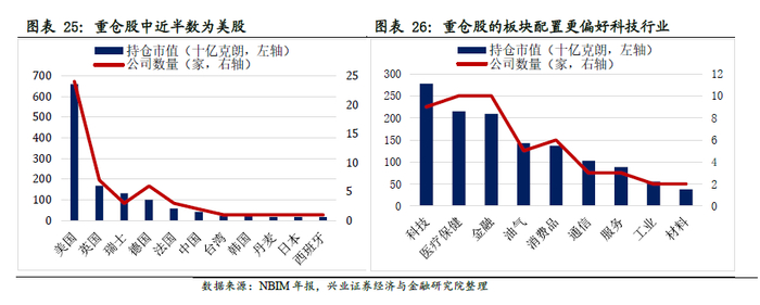 我们选取持仓市值排名前50的重仓股来对NBIM的投资行为更深入的研究。前50大重仓股合计规模占全部持仓接近25%。具体重仓股名单详见文末附录。