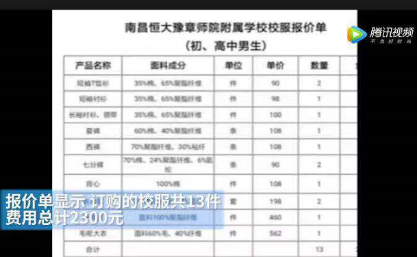江西一豫章师院附属中学校服2300元:家委会别不担责