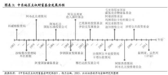 中东地区由于丰富的石油资源带来巨大的财富,但石油价格的波动也迫使这些国家考虑石油收入的保值增值问题。为了抵御石油价格波动对经济的冲击,也出于对油气资源耗尽后国家命运的担忧,中东地区的国家纷纷发起主权财富基金寻求经济出路,将不可再生资产转换为更多样化的资产组合,减轻“荷兰病”的影响,实现为下一代储蓄的目的。1976年成立的阿布扎比投资局是中东最大的主权财富基金。阿布扎比投资局旨在将阿布扎比的国有资产进行谨慎投资,创造长期价值,维护和保持阿布扎比酋长国当前和未来的繁荣。