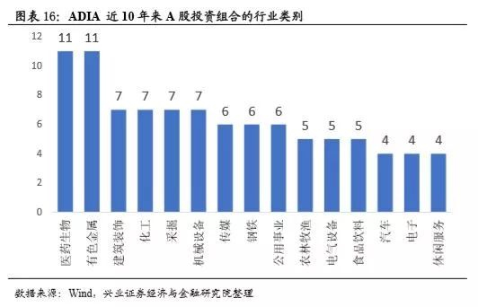 偏好上游制造业。从2010年至今,ADIA共选择过115只A股进行投资,这些个股涵盖各个行业,主要所属的行业为医药生物、有色金属、建筑装饰、化工、采掘、机械设备,从排名靠前的公司所处行业看,周期行业在投资名单中出现的频率较高。