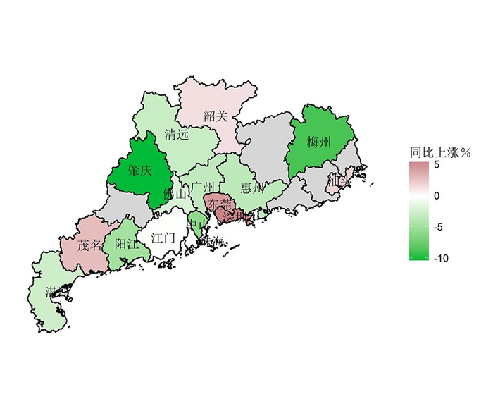 2019年10月珠江三角洲城市群房价同比分布图