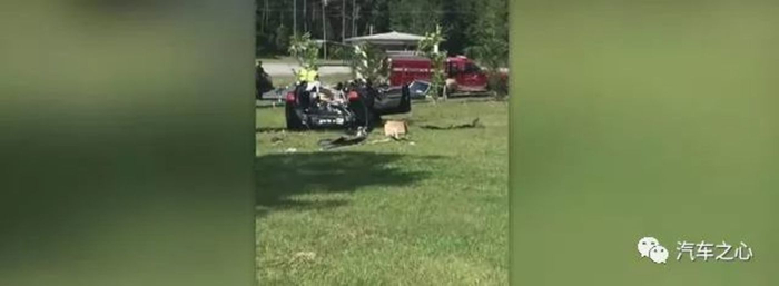 因撞击力太大,特斯拉车身发生了逆时针旋转,致使前车身结构和与车辆后部分离。
