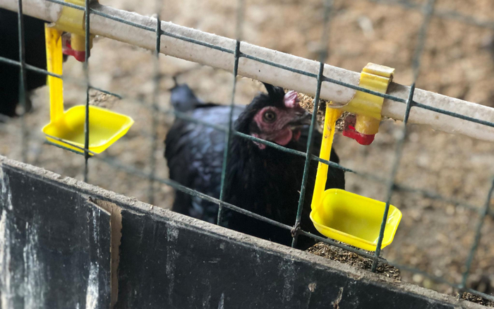 纯草农场的贵妃鸡羽毛是黑白相间的,二代杂交鸡种全身呈现黑色。新京报记者 田杰雄 摄
