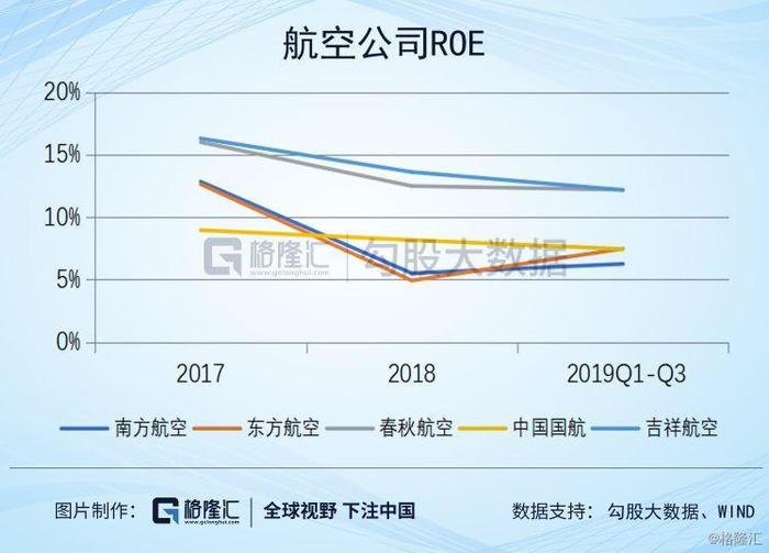春秋票价很低,成本更低,净利率还是大幅高于三大国有航空。净利率高即公司盈利能力强,体现到ROE、ROA上,这两个指标也超过同行。ROE高代表春秋在单位净资产上盈利更多,春秋的净资产当然更值钱,所以PB会比较高。