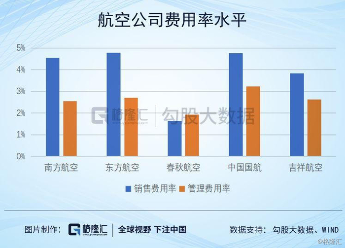 春秋最大程度地利用第三方在各地机场的资源,不仅保证飞机最快起飞,还降低了相关管理费用。春秋通过预算管理、绩效考核以及人机比的合理控制,降低费用。2019 年上半年公司管理费用率1.12%,也远低于行业。