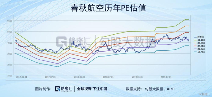 从公司历年估值来看,目前的PB估值也在一个合理位置。虽然航空公司盈利不太稳定,但是年度PE也有一定参考价值,春秋PE为21倍,也是比较合理的估值。