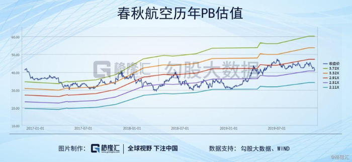 对应的,廉价航空公司营收增速会更高一些。春秋近三期增速显然高于其他航空公司,目前仅略低于吉祥航空的增速。营收增速高的公司估值应该更高,体现到PB上也一样。