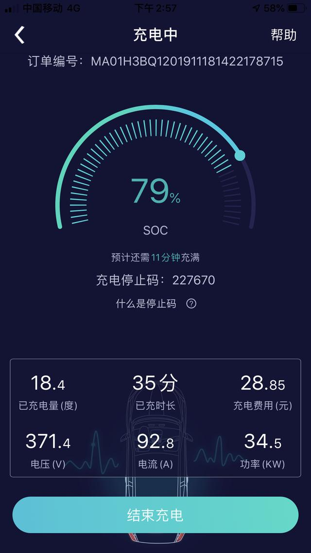 之所以充30块钱,一方面因为我是第一次充电,怕万一踩到什么坑,白扔了钱;另一方面是我知道这台续航305公里的e2,只装了35.2度(kWh)的电池,国网充电1块5毛多一度电,30块钱也能充不少。