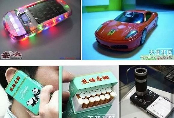 一辆微型奥迪轿车模型,翻过来就是一部带摄像头的触摸屏手机,在其‘车头’的前灯里面,竟然暗藏着一只手写笔;一 款有着早年‘大哥大’风格的手机,因为其上端的天线能在瞬间释放出强电流,而被称为‘防狼手机’;一个‘手雷’握在手里也不用害怕,只要一掰,它马上就可以拨打电话了。