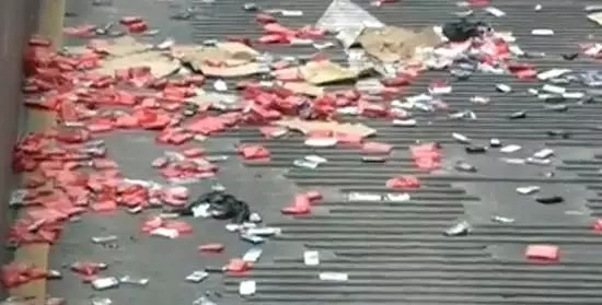 深圳电视台拍下华强北路曼哈数码广场,近千部山寨苹果、诺基亚手机从18层楼被扔下来的场景