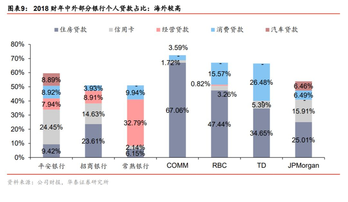放眼海外,零售与财富管理业务仍是蓝海市场。中国零售型银行的代表为招商银行、平安银行、常熟银行(零售贷款占比均已超过 50%),财富管理银行的代表为招商银行,上述三者的零售与财富管理业务体量、占比、发展质量均有提升空间。提升空间在估值端也有所体现,截至 11 月 25 日,招商银行、常熟银行、平安银行 PB(MRQ)分别为 1.62 倍、1.39 倍、1.13 倍;而零售及财富管理业务领先的国际银行巨头澳大利亚联邦银行(澳交所)、加拿大皇家银行(纽交所)、加拿大道明银行(纽交所)、摩根大通(纽交所)的 PB(MRQ)分别达到 2.09 倍、2.03 倍、1.83 倍、1.74 倍,较中国对应龙头银行溢价明显。