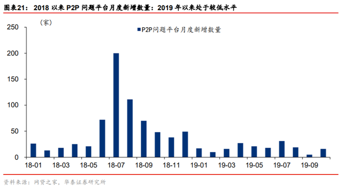 零售贷款风险出清步入下半场,新增风险压力可控。最近两年银行业积极布局零售转型,对公投放较为谨慎,零售贷款风险成为主要的新增风险来源。2019年上半年零售贷款不良率受经济下行、网络贷款共债风险、催收力度减弱等因素的影响有所抬升。我们认为风险暴露的高峰期已过,2020年零售业务信用风险压力较小。主要原因为:网络消费贷款风险出清的高峰期为2018年6-12月,彼时P2P单月新增问题平台数量达到高峰。考虑传导的时滞,共债风险传导至银行,集中产生不良贷款的时间为2019年上半年。2019年以来P2P问题平台的数量已显著低于2018年同期,央行表示2020年上半年有望基本完成网贷领域的存量风险化解。随着共债风险影响逐渐弱化,零售贷款信用风险较为可控。