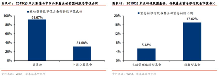 指数型基金重仓持股中,银行股的比例显著高于主动管理偏股基金。据2019年公募基金三季报,主动管理偏股型基金(含普通股票型、偏股混合型、灵活配置型)银行股重仓持股总市值占其全部重仓持股的比例为5.43%,而指数型基金对应比例高达17.02%。指数型基金的快速发展可为银行股带来较其他板块更多的增量资金,有利于银行股估值提升。