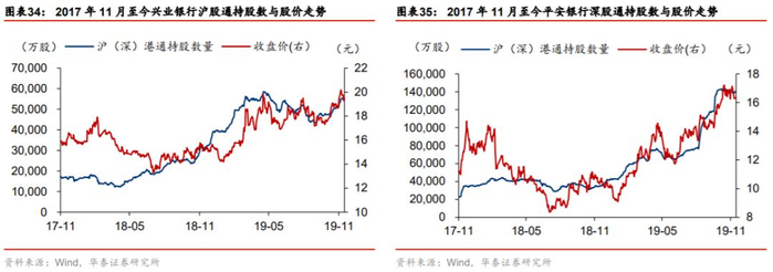 对外开放大步向前,国际化带动投资风格趋同。资本市场的对外开放正处于深化期,境外资金入市的投资便利程度大大提升。资本市场对外开放的主要措施包括:2018年5月证监会将沪深股通额度一次性提升4倍;2019年沪伦通面世;外管局取消QFII和RQFII投资额度限制;A股被纳入MSCI ACWI全球指数和新兴市场指数,纳入因子已提升至20%。近年来外资加速流入A股,对银行股走势产生了深远影响。以兴业银行、平安银行为例(分别为仅在沪市、深市上市的全国性银行),2018年以来其股价走势与沪深股通持股数量走势高度相似。