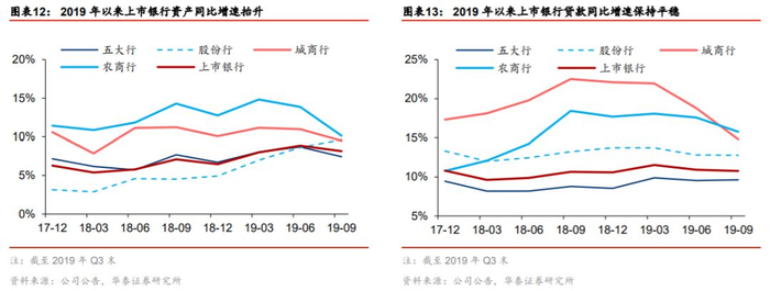 资产增速提升是稳增长的需要,也是银行盈利增长的需要。2019年以来资产增速整体提升,但年中以来信贷需求较弱、房地产融资政策收紧,以及包商银行事件后中小银行流动性受冲击,银行资产增速有所回落。我们认为2020年上市银行资产增速有望提升,从投放意愿来看:一方面,增加信贷投放是逆周期调节的需要。在稳增长的背景下,逆周期调节力度有望加大,提前下达专项债额度,供应优质资产;对小微、民营的支持提振实体需求。另一方面,LPR改革后银行息差面临收窄压力,加大贷款投放力度可以量补价,防止营收和利润增速随息差快速收窄。