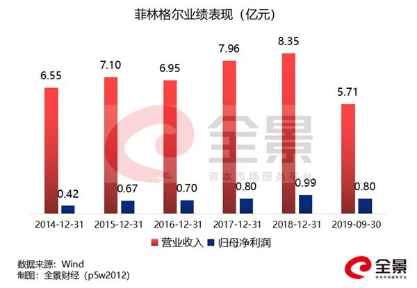 2019年前三季度,菲林格尔的营业收入为5.7亿元,净利润为8003万元,较去年同期仅小幅增长2.7%。