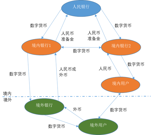 二是遵循传统的中央银行-商业银行二元模式运行框架。中央银行将数字货币发行至商业银行业务库,商业银行受中央银行委托向公众提供数字货币存取等服务,并与中央银行一起维护数字货币的发行和流通体系的正常运行。