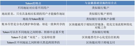 Token及其交易的以下性质是区块链应用于金融基础设施的关键(表1):