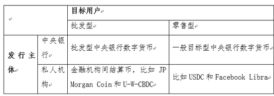 表3聚焦Token范式在法定货币领域的应用,并按照两个维度进行分类。第一个维度:发行主体是中央银行还是私人机构。第二个维度:目标用户是批发型(只面向机构)还是零售型(面向公众)。
