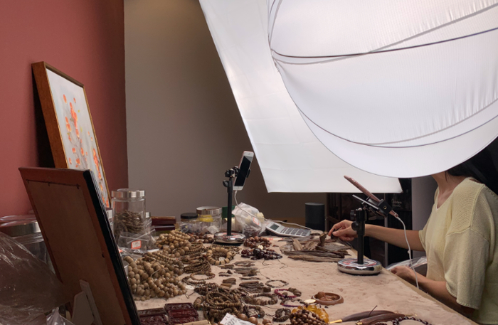 渠道和平台也开始深度多样性,一些商家开始转战电商、直播平台。小苏是在淘宝网上进行佛珠直播的仙游县第一人,她在家经营的“名木相传”商店现有员工两名,生意不错。她在接受1℃记者的采访时表示,不管别人怎么做,自己坚持做“大自然的搬运工”,把最原汁原味的佛珠卖给消费者。