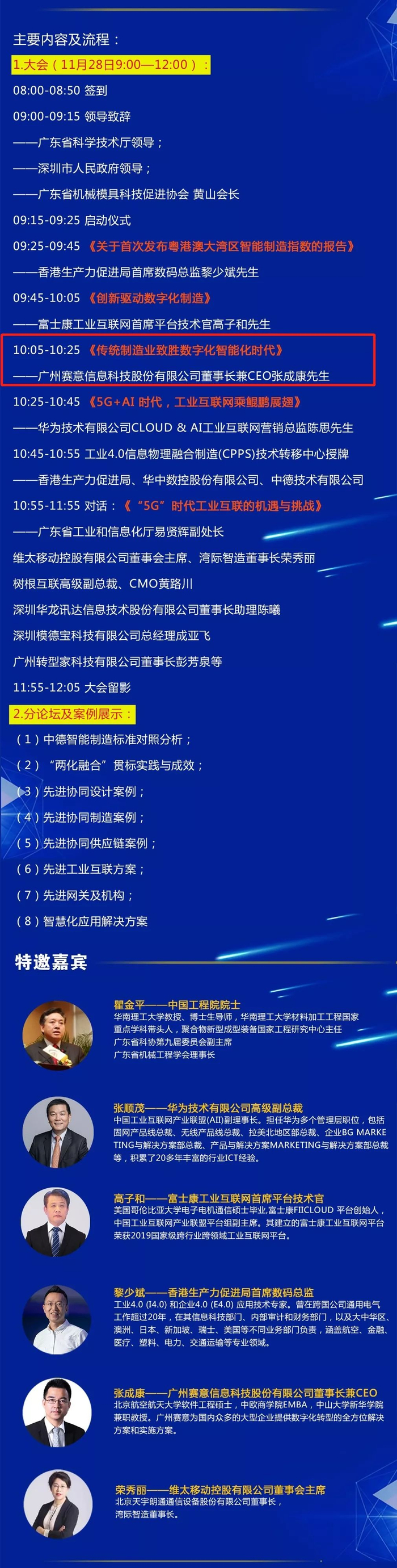 “2019国际智慧经济大会一DMP大湾区工业博览会”将于2019年11月28日,在深圳国际会展中心举行, 赛意信息 董事长CEO张成康受邀出席。作为此次大会的特邀演讲嘉宾,将与大家共话“传统制造业致胜数字化智能化时代”,与大咖们共同探讨“工业互联网落地+数字化解决方案+大湾区先进制造”。