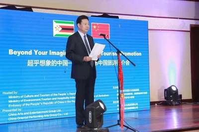 2019年11月17日,“超乎想象的中国”——津巴布韦中国旅游推介会在维多利亚瀑布城成功举办。中国文化和旅游部副部长李群,驻津巴布韦大使夫人王薇参赞,维多利亚瀑布市市长索姆文罗·达拉米尼,津巴布韦青年、体育、艺术和娱乐部艺术与文化司副司长恰露提、维多利亚瀑布市旅游局官员以及津巴布韦旅游从业人员等百余人出席活动。