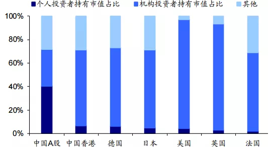▼图六:全球主要国家个人投资者持有市值占比