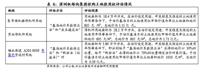 集团也可以增资扩股方式将土地资产注入股份公司。采用此种方式一般是因为股份公司在自身发展过程中,因为改、扩建需要大量建设资金,而股份公司仅靠自身的财力又无法满足资金需求,需要集团公司以土地等实物投入,同时股份公司其他股东按照股比以现金方式等比例向股份公司注入资金。采用增资扩股的方式一方面可以保障集团的控股地位,另一方面,这种形式虽然同样需要将划拨土地变更为出让土地,缴纳土地出让金后再注入到股份公司,但根据财政部门的相关规定可以减免一定的税费,但是需求获得中小股东和监管部门的认可。2008年深圳机场集团曾以这种形式向机场注入部分飞行区资产及土地使用权:机场向集团发行股份购买机场集团拥有的飞行区资产(包括跑道和滑行道资产、A号候机楼停机坪资产、B 号候机楼停机坪资产及土地使用权、货站停机坪资产及土地使用权、相关助航设备和设施)、航站楼停车场及站前交通设施、深圳市机场物流园发展有限公司 30%的股权以及相关土地使用权。本次收购涉及飞行区、物流园公司资产涉及 B 号候机楼停机坪用地、货站停29机坪用地、国内货运村用地等 3 块土地的使用权的收购,3块土地采用“基准计价系数修正法”、“成本逼近法”、“剩余法”等方法综合评估,总地价为2.8亿元。